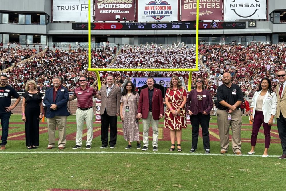 From the 2023 FSU vs Syracuse football game, where Florida educators of the year were recognized on the field, alongside Dean Damon Andrew, FSU President Richard McCullough, and First Lady Jai Vartikar